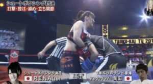 仕事復帰では女子格闘家のRenaとシュートボクシング対決で破れる
