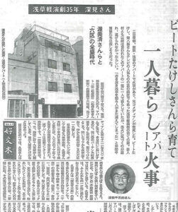1983年の2月2日、浅草の深見さんのアパートで火事が起き、前日にお酒に酔っていた深見さんは逃げ遅れ、59歳の若さで亡くなってしまったのです。