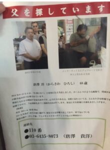 父が行方不明ということで捜索願を出し、ネットにチラシの写真アップしたとのことでした。