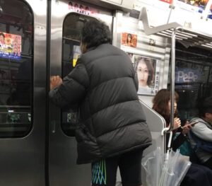主に東京都心部を中心に広範囲を電車移動してるようですが、電車内だけでなく駅前にいる姿を目撃されることも多いようです。
