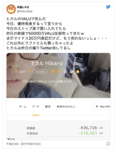 実は井川拓哉さんもヒカルさんらのVAを初期から所持し、VAの暴落直前に高値で売り抜けていたそうです。