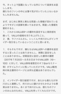 そして、自身のVA(VALU上で取引される株式単位)について最高値で自社株買いを行うと発表しました。